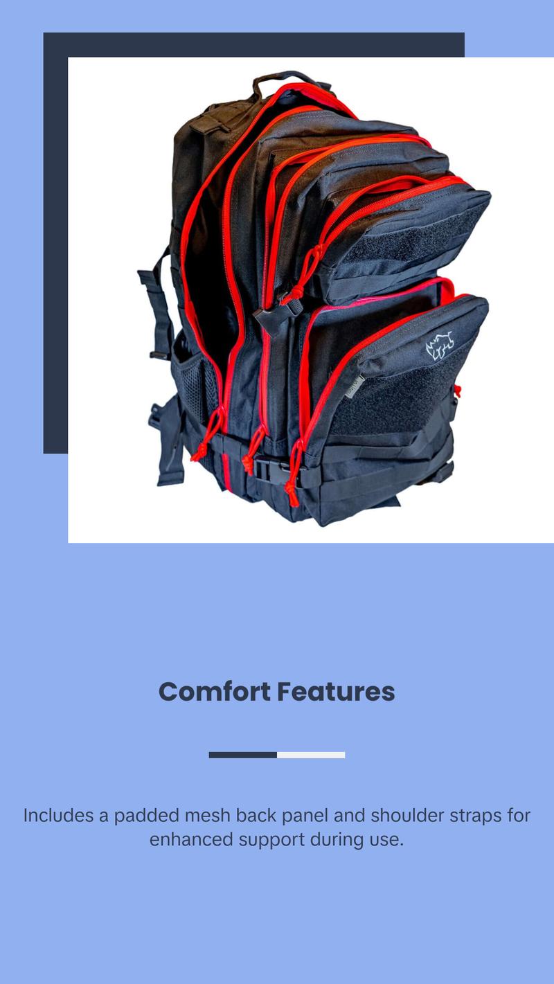 - Multiple interior sleeves for tablets, hydration bladders, or gear.