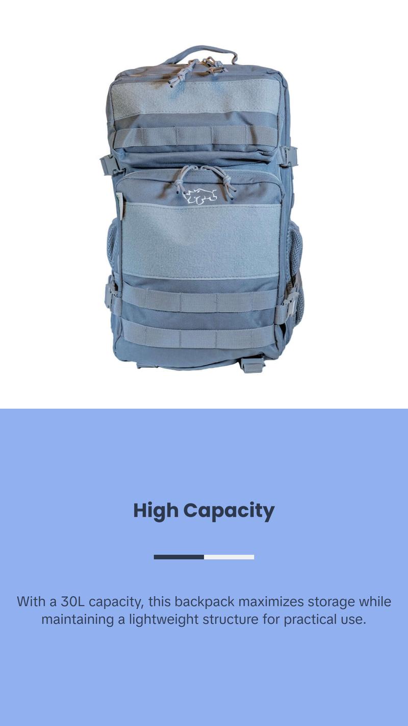 Crafted from durable 500D nylon, this backpack offers lightweight functionality. Perfect for fast-moving users, it provides ample space for essentials like sandwiches. Available in Tactical Black, Urban Grey, or Black Camo, this pack delivers high capacity with practical organization.